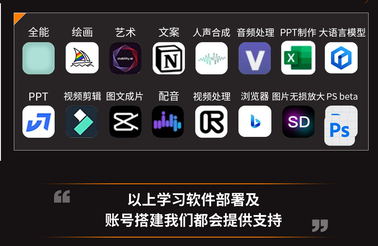 课程由一线AIGC项目实操导师领衔,带你从认知升级到项目执行,实战演练Midjourney、Runway、ChatGPT、Pika、Kling等核心AI工具。无论你是想做个人IP、品牌升级,还是想入局AI行业,这门课都将成为你迈向AI生产力时代的第一块跳板。